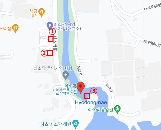 - 카약: 쇠소깍은 카약 체험을 즐기기에 최적의 장소입니다. 푸른 바다 위를 가볍게 미끄러지며 아름다운 자연 경관을 감상할 수 있습니다. - 1번 카약신청 매표소 : 지역주민들이 운영하는 곳으로 뗏목과 카약이 있습니다. 조끼는 빨간색입니다 - 2번 카약신청 매표소 : 일반업체에서 운영하는 곳으로 검은색 조끼를 줍니다. - 3번 카약 타는곳 : 뗏목과 카약을 타는 곳인데 빨간색 조끼는 앞쪽, 검은색은 맨 뒤쪽 잘 안보이는 곳에서 탑니다 - 길 끝까지 걸어가면 카약 탑승장이라고 표지판이 있고 내려가면 검은 모래가 있습니다.